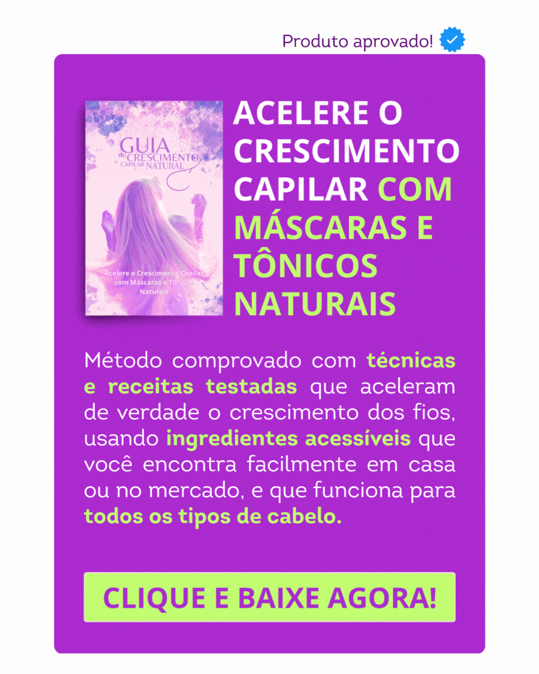💡 Dica: um couro cabeludo limpo e estimulado é o segredo para ativar o crescimento natural!